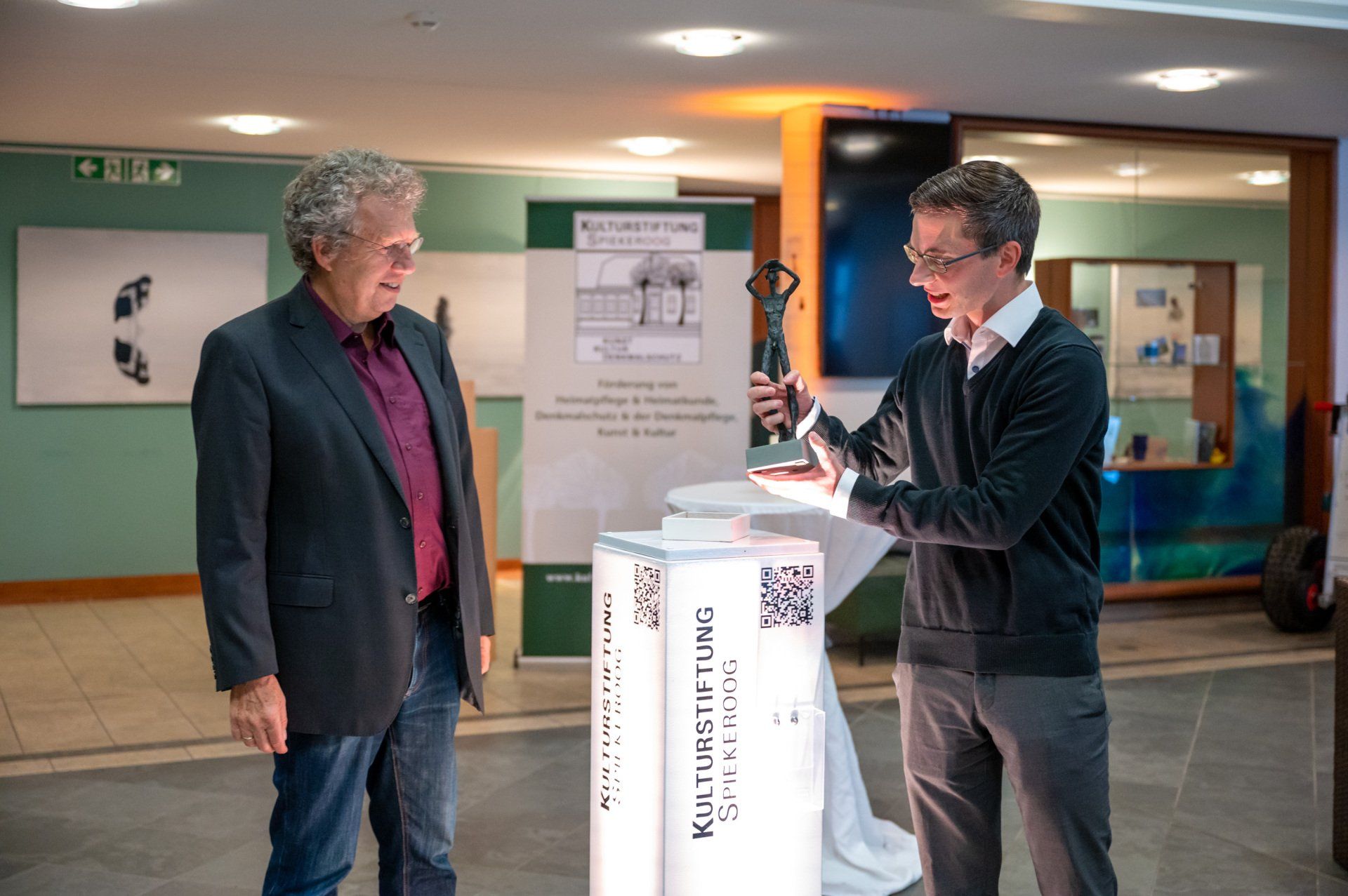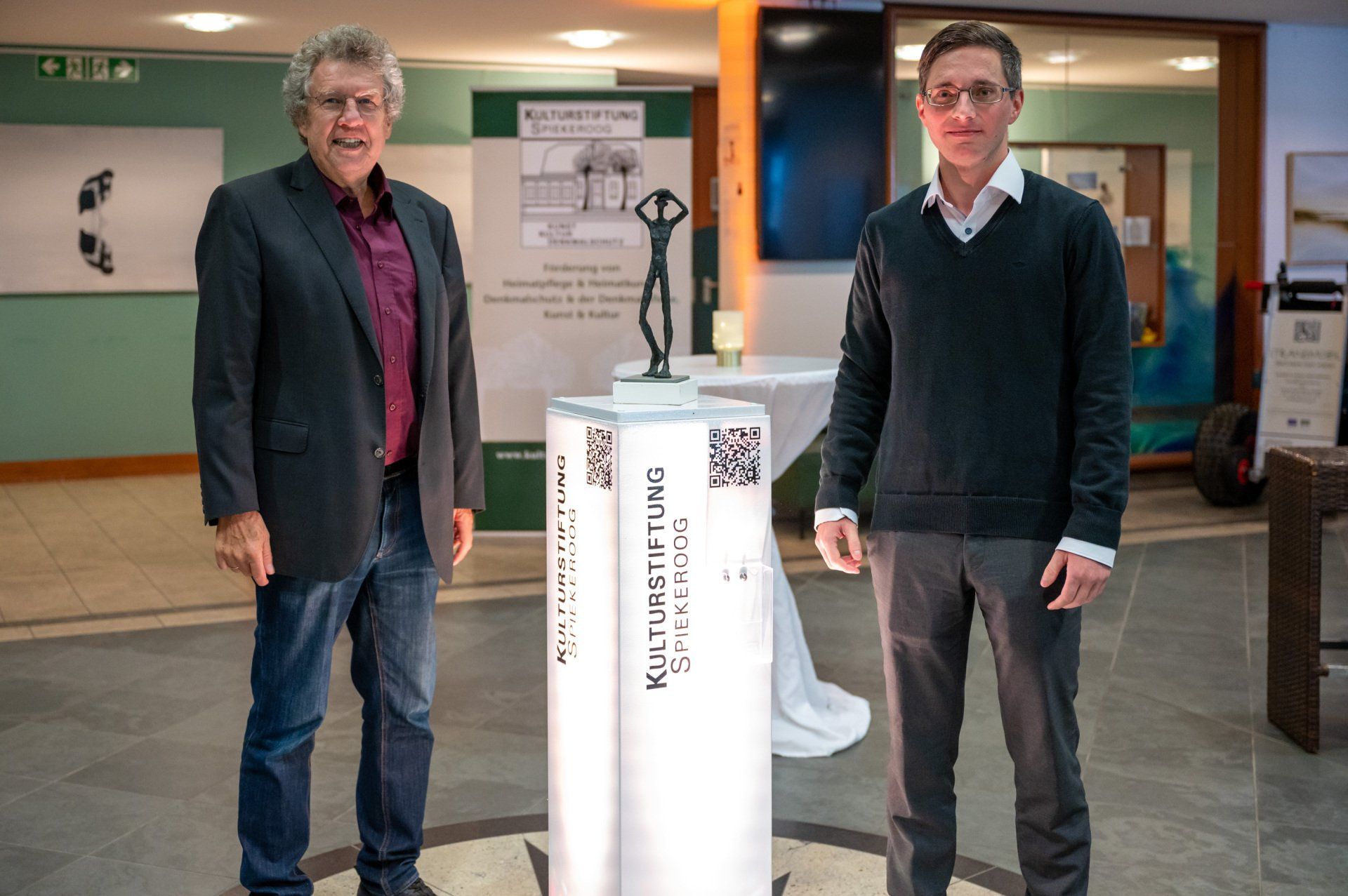 Der Kunstliebhaber und Spiekeroogfreund Denis Schwarze ist der glückliche neue Besitzer des 33 cm großen „Utkiekers“ aus der einmaligen Sonderedition, in der drei Exemplare des Utkieker-Modells in Bronze gegossen wurden.