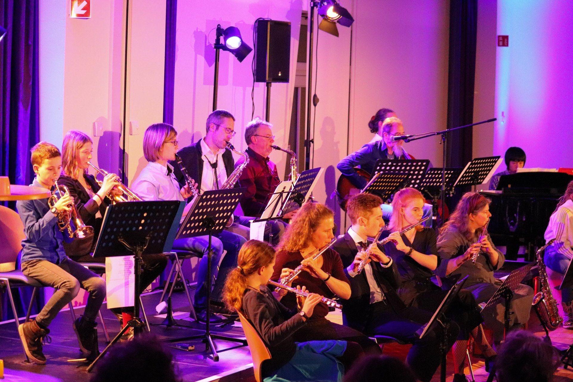 Als Ergebnis präsentiert wurden ca. 70 Minuten Musik, in denen allen Teilnehmenden der Spaß im Vordergrund stand. Dabei blieb es für die Ohren keinesfalls langweilig: Unsere diesjährige Workshopband hat neben Filmmusikstücken wie „Glücklich“ aus dem Filmklassiker „Pünktchen und Anton“ auch traditionelle Seemannslieder wie „What shall we do with the Drunken Sailor?“ performt. Peter Dahm hat es auch dieses Jahr wieder geschafft, das Beste aus jedem einzelnen herauszuholen, auf individuelle Bedürfnisse einzugehen und aus vielen verschiedenen einzelnen Musiker*innen eine geniale Workshopband zu formen. Das Ergebnis konnte sich sehen lassen! Übrigens: Wer nicht dabei sein konnte, kann sich unter diesem Link das Konzert nachträglich anhören: https://youtu.be/YP8mGo_Wp_0?si=StioSaMD4id3LOPu