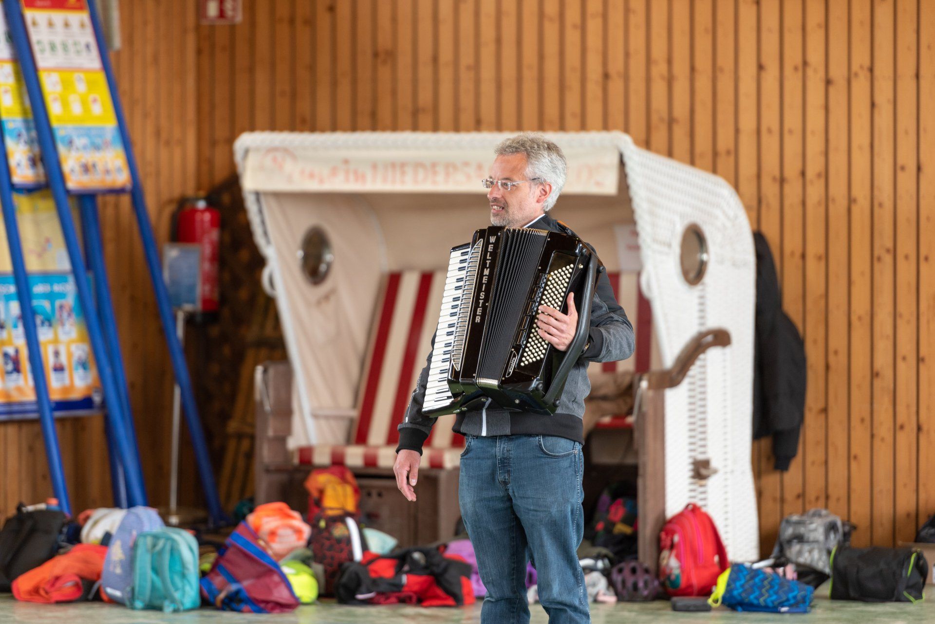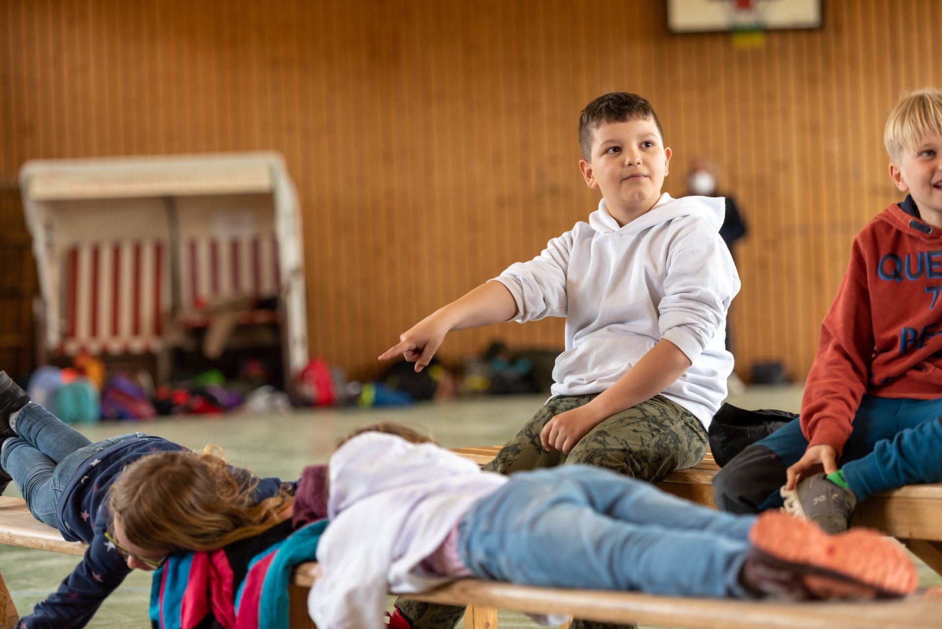 Die Kinder der Inselschule aus den Klassenstufen 1 – 4 wurden in einem dreitägigen Intensiv-Theater-Workshop am Vormittag von einer Theaterpädagogin, den vier Darsteller:innen, dem musikalischen Leiter und der Kostümbildnerin mit dem Thema der Vorstellung SANDBANK zu eigenen szenischen Bearbeitungen geführt.